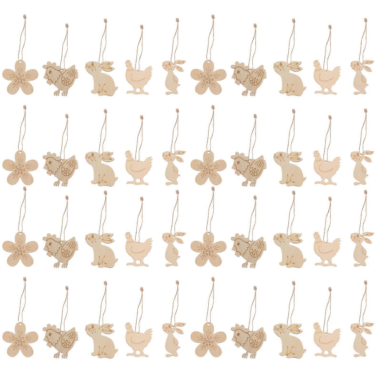 50Pcs Hand Paint Chips Easter Wood Chips Easter Graffiti Pendant Festival Photo Props