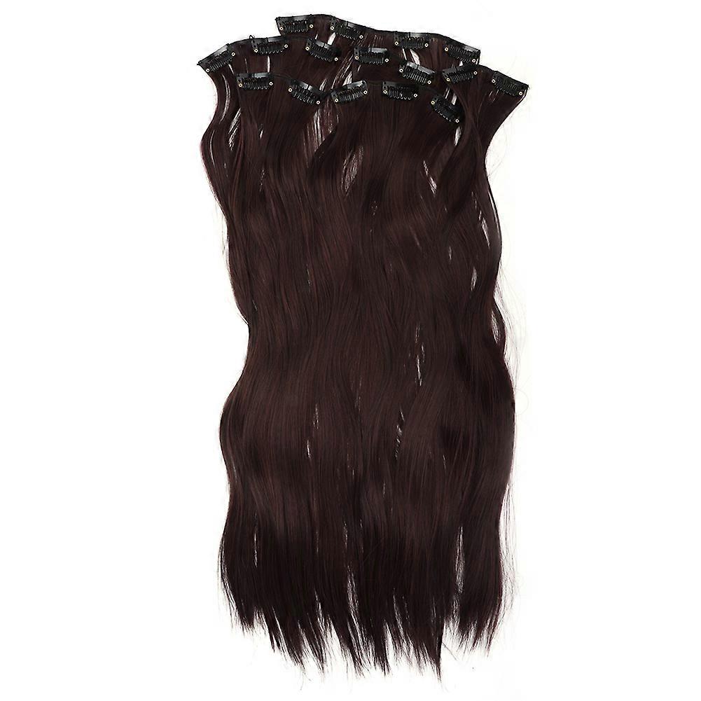6Pcs Long Straight Hair Extension Wig Piece Set 16 Clips Linen Brown Hair Piece Styling Tool
