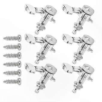 6-Pack Electric Guitar Tuning Pegs, Silver Sealed Machine Heads for String Locking, Left-Oriented Setup