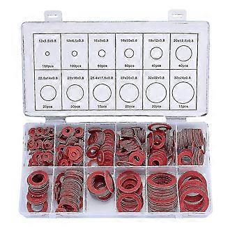 600pcs Assorted Fiber Washer Kit - 12 Sizes of Red Steel Flat Washers & Paper Fiber Ring Seals for Various Applications
