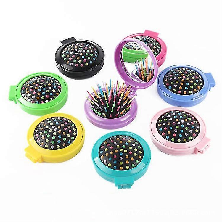 7 Pcs Round Travel Hair Brush With Mirror Folding Pocket Hair Brush Mini Hair Comb With Makeup Mirror For Travel