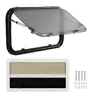 900 x 450 mm RV Sliding Window, Double Layer Acrylic Glass, 75° Opening Angle, Exterior Exit Window with Support Rod, Privacy Curtain, Mosquito Net