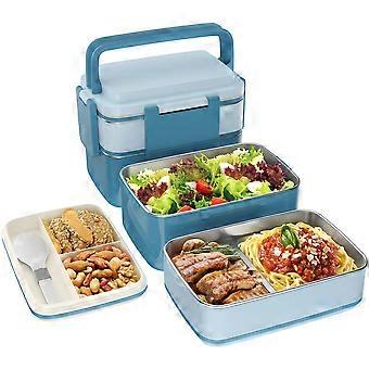 Bento box, lunch box for adults with stainless steel compartment, lunch box, leak-proof, large volume, BPA-free, keep fresh for a long time (blue)