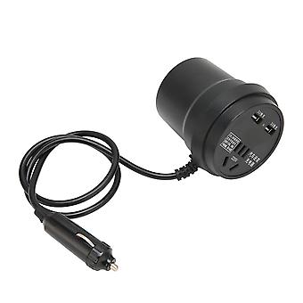 Black Car Inverter 150W DC 12‑24V to AC ‑ Converter 2 USB Port Power Adapter for Automobile