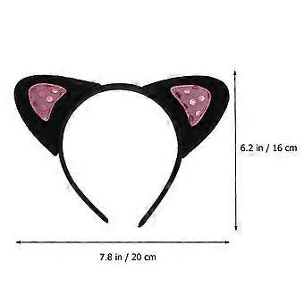 Black Sequin Cat Headband Set with Tail and Tie for Costume Party Decoration One Size Fits Most