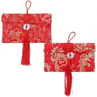 Brocade Red Envelopes with Gold Stamping for Storage and Special Occasions 2 Pcs