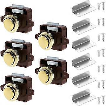 Brown and Gold 5 Pack Push Button Locks, Cabinet Drawer Locks, Keyless Door Lock Knobs for Caravan, Motorhome, Van, Boat