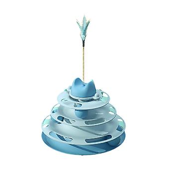 Cat Toy Roller 3 Level Kitty Exercise Toys for Chasing Kitten Scratching Blue with Feather