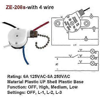 Ceiling Fan Switch Zing Ear Ze-208s E89885 3 Speed 4 Wire Chain C-2025