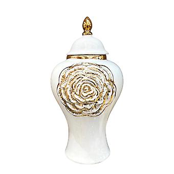 Ceramic Vase Storage Jar with Lid Temple Jar Glazed Home Accent Piece Modern Size L