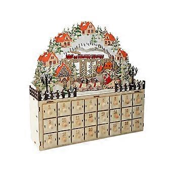 Christmas Wooden Advent Calendar Light up with 24 Drawers Xmas Desktop Decor