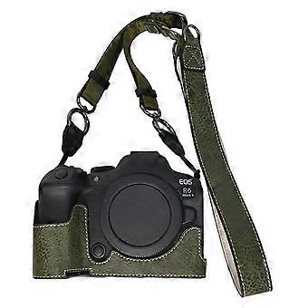 Compatible For Canon EOS R6 Mark II / R6 / R5 Camera Case with Shoulder Strap Large Cutout Litchi Texture PU Protective Cover