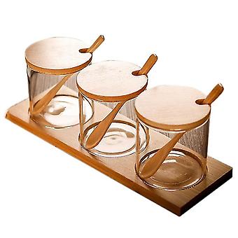 Condiment Jars With Lids And Spoons, Set Of 3 Spice Jars Kitchen Transparent Condiment Salt Pepper