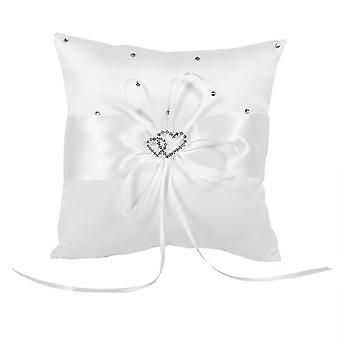 Coussin porte-alliances de mariage avec nœud papillon, double cœur et diamants (blanc)