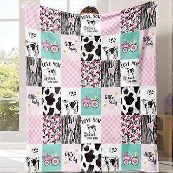 Cow Puzzle Pattern Flannel Blanket, 1 Count Soft Warming Bedding Blanket with Storage Bag, Comfy Lightweight Bedding for Halloween Decor