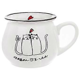 Cup with cat motif in ceramic, 300 ml, white colour