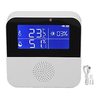 Feature 1、Measurement Per Second: This wireless thermometer is equipped with an excellent microchip and sensitivity sensor that supports real time data updates. Users can also choose the temperature or humidity reporting time, such as 1 second or 100 seconds. 2、Smart Settings: Humidity gauge can be easily operated by mobile APP, you can set the upper and lower limits of temperature and humidity. You can also view historical temperature, humidity and brightness data. Understand how the environment changes at night or when you are not at home (minimum temperature up to: ‑19℃, maximum temperature up to: +60℃). 3、2.9 Inch LCD Display: Data are clearly visible, such as temperature display, humidity display, date display, brightness display, time display. Support temperature unit switching (℃ or °F), completely solve the problem of different units in different countries. 4、Main Function: The room temperature monitoring device has an external temperature sensor probe, you can use it to watch the refrigerator, fish tank, incubator, greenhouse and so on. (probe not included). 5、Self Calibration Required: 1. For calibration accuracy, place the thermohygrometer in the same environment for more than half an hour. (The temperature detecting head should be suspended). 2. Connect the temperature sensing line to the hygrometer, and there is a temperature deviation. 3. Press the setup key three times continuously, and the "drop" prompts to enter the calibration. 4. If two temperature and humidity put together the same temperature, should be calibrated first, and long term placed in the same space. The left intake can not be blocked. Item Type: WiFi Temperature and Humidity Sensor Material: ABS Battery Type: Built in lithium battery (shipped with built in lithium battery) Battery Capacity: 500mAh Weight: Approx. 160.00g/0.4lb Package List 1 x Temperature and Humidity Sensor 1 x USB Cable 1 x English Instruction Manual 2 x Expansion Tubes 2 x Expansion Screws