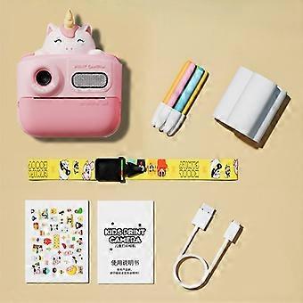 Direct Print Camera for Children, 4800W Hd Portable Slr Pink Unicorn (No Card)