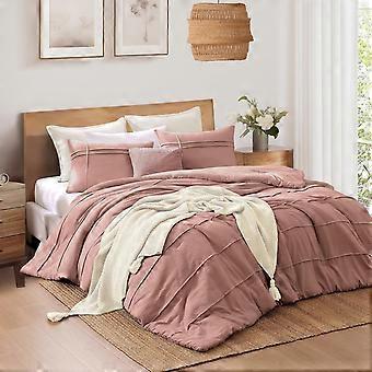 Dusty Pink King Comforter Set, Pinch Pleat Boho Bedding, 3PC Lightweight Fluffy Bed Set with 2 Shams (102"*90", King)
