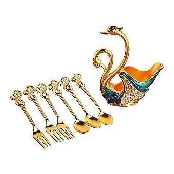 Elegant Swan Flatware Set with 3 Dessert Spoons & 3 Forks for Ice Cream, Fruit, Coffee Stirring Serving Holder Base