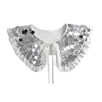 Elegant Women's Detachable Ties Bows False Collar Neck Ruff Sparkling Sequins Pleated Ruffle Mini Shawl Cape Accessory