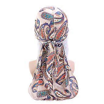 Exquisite Unisex Printed Silk Durag Doo Rag Pirate Hat Soft Polyester Headscarf with Long Tail Turban for Head Wrap Wave Khaki