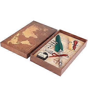 Feather Pen Set Dipped Ink Retro European British Fancy Calligraphy Practicing Gift Box