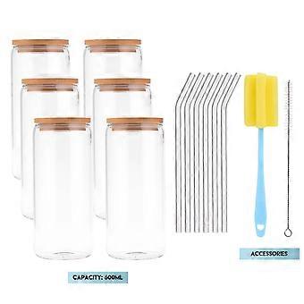 Glass Straw Set with Bamboo and Wood Lid for Drinking Can Glasses