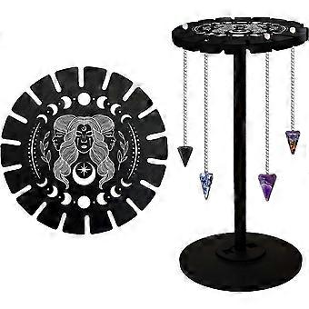 Goddess Pendulum Stand Crystal Display Shelf Black Wooden Divination Dowsing Wheel Pendulum Holder Witch Stuff Crystal Shelf Display for Stone Necklac