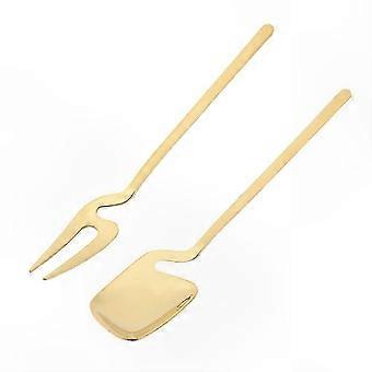 Gold-Plated Long Handle Spoon and Fork Set for Desserts, Ice Cream, and Beverages