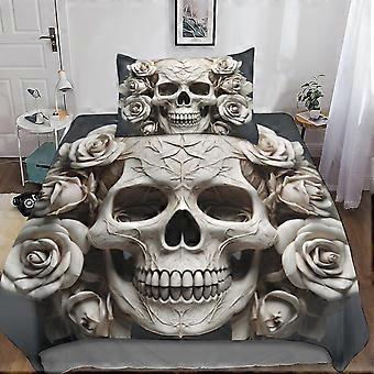 Gothic Skeleton 3D Print Microfiber Bedding Set, with Rose Duvet Cover and Pillowcases, Suitable for Boys and Girls with Zipper Closure 2 Pcs Single