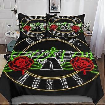 Gun and Rose 3 Piece Bedding Set with 3D Skull Duvet Cover - Microfiber Bedding Set with Double Zipper Closure
