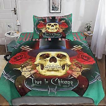 Gun and Rose 3D Print Microfiber Bedding Set, with Skull Duvet Cover and Pillowcases, Suitable for Boys and Girls with Zipper Closure 2 Pcs Single