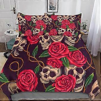 Gun and Rose 3D Print Microfiber Bedding Set, with Skull Duvet Cover and Pillowcases, Suitable for Boys and Girls with Zipper Closure 3 Pcs Double