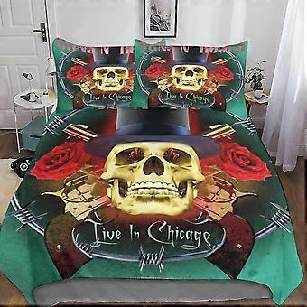 Gun and Rose 3D Printed Bedding Set Duvet Cover Pillowcase, 3 Piece Skull Bedding Set with Zipper Closure, for Adults and Kids Double