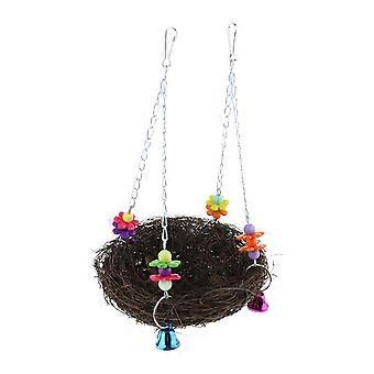 Hanging Toy with Bells Cage Perch Stand For Parrot Climb Chew Toys Natural Rattan Nest