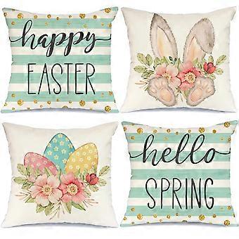 Happy Easter Pillow Cases 18x18 4 Set Hello Spring Rabbit Eggs Striped Home Decor Sofa G206-18