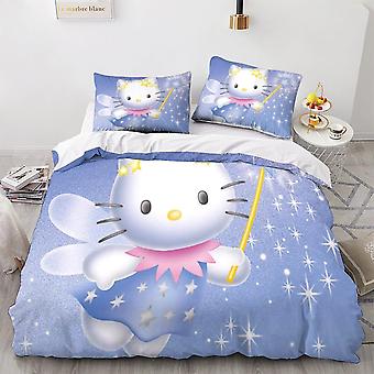 HOUKIG Hello Kitty Duvet Cover Modern 3 Pcs Anime Characters Bedding Set Size Quilt Cover Pattern Bedding Set Double