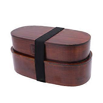 Japanese Style Wooden Lunch Box Portable Bento Container Food Carrier for School Office (Double-layer, Brown)