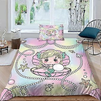 k523 Little Mermaid In Shell Kids Bedding Set,2Pcs Duvet Cover,Comforter Set with Zipper Closure,Soft Microfiber for Teens And Adults Single o523