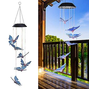 LED Butterfly Wind Chime Lights Solar Powered Color-Changing Blue Red