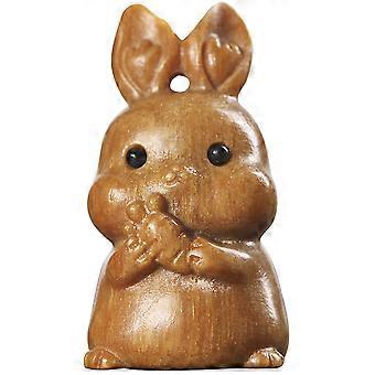 Light Brown Wooden Rabbit Figurine Pendant for Blessing Use Accessory