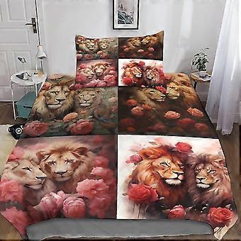 Lion 3D Print Duvet Cover Set Cyber Flower Bedding Set with Zipper Closure, Soft Microfiber 2 Piece with Pillowcases for Kids and Adults Single
