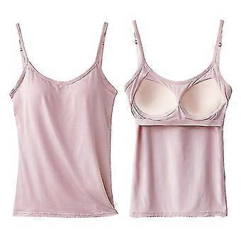 Long Camis With Built In Shelf Bra Adjustable Strap Women Layering Basic Tanks Top Solid Cotton Chest Pad Summer T-shirt [advanced Quality!50%off]