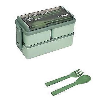 Lunch Box 1400 ml,Double Layer Snack Box with 3 Compartments and Spoon Forkblue