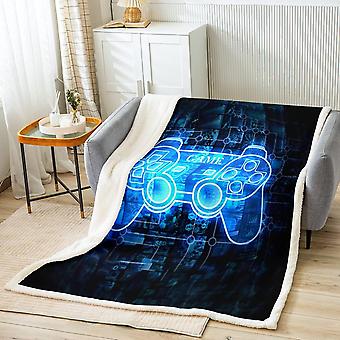 Mechanical Sense Gamer Plush Blanket Boys Gaming Fleece Throw Blanket for Kids Boys Blue Game Pad Sherpa Blanket Game Controller Fuzzy Blanket for Bed