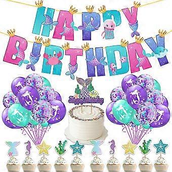 Mermaid Themed Latex Sequin Balloon Flag Cake Insert Set Birthday Party Decorations