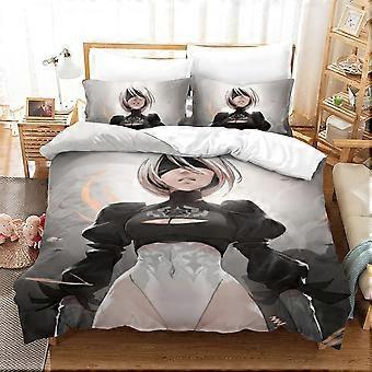 Nier Automata Bedding Set, Microfiber Duvet Cover and Pillowcases, Yorha No Type B and Game D Design with Duvet Cover and Zipper Closure R 135*200 CM