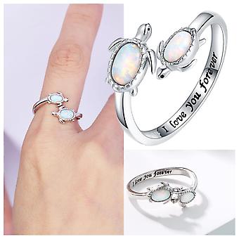 Opal Turtle Ring I Love You Forever Adjustable Open Natural Ocean