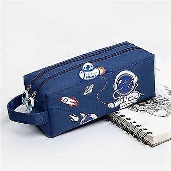 Pencil Cases Double-Layer Large-Capacity Portable Exam Pencil Case Boys Girl Stationery Bag(Color : Blue)